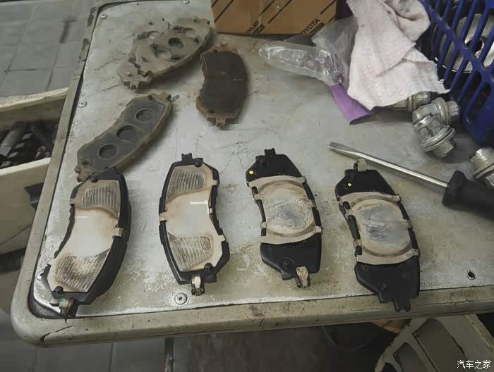 上次去检查车的时候,保养车的师傅就告诉我前刹车片该换了,我记得当时告诉我还剩余不到三毫米,心里想着要不再坚持一段时间,所以又开了几千公里。不过最近开车用刹车频繁一些,并且最近踩刹车也有点异响,考虑了一下还是决定把前刹车片换掉,毕竟开车不能将就,特别是刹车这么重要的部件。毕竟今年的钱不好赚,所以花钱还是比较慎重的,开始的时候想着去修理店,花二三百换一下刹车片,毕竟上次在一汽丰田店问的,丰田威驰原厂换下来要500多块钱,这样一来的话,能省将近一半的费用。不过这两天仔细考虑了一下,我这台威驰刹车片真是耐用,现在跑了十八九万公里才换,毕竟是跟安全有关的东西,也不是每次保养都要更换,自己在网上也查了一下劣质刹车片跟好的刹车片的区别,便宜的刹车片价格低,但是刹车距离长,并且对刹车盘损伤大,原厂的刹车片可靠性更高,刹车距离短,并且对刹车盘损伤小。于是综合考虑了一下,今天中午的时候把车开到一汽丰田店里,把自己的爱车换了一套原厂丰田威驰前轮刹车片。