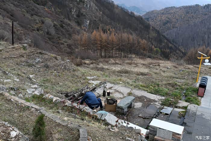 第一站,我们先来到了罗睺寺,找了一处空地把车停好,由于停在半山腰上,保险起见,学着别人在车轮前面垫了两块石头。