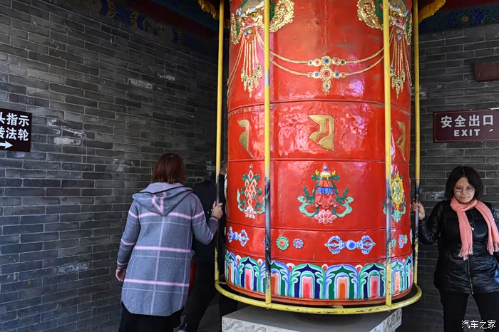 随着人群往里走,看到了一排排的转经筒,相传转动一遍经筒即是通读了八字/六字真言,也算是表达了自己的虔诚。