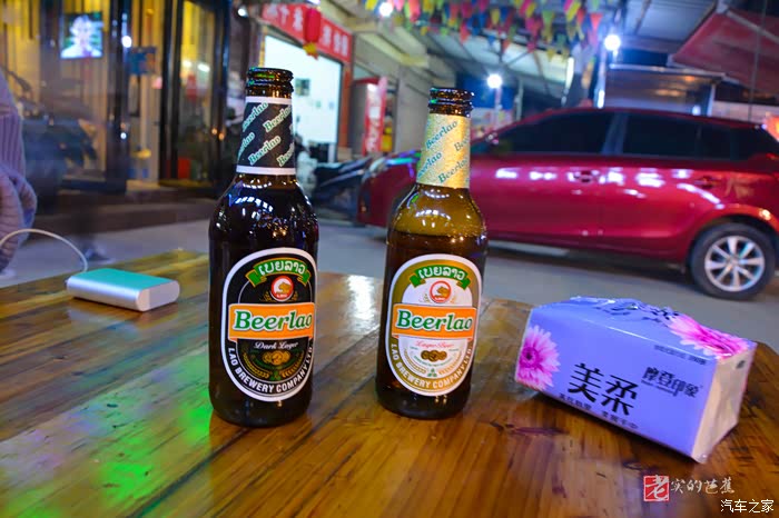一直长途开车累了,路边摊配老挝啤酒。