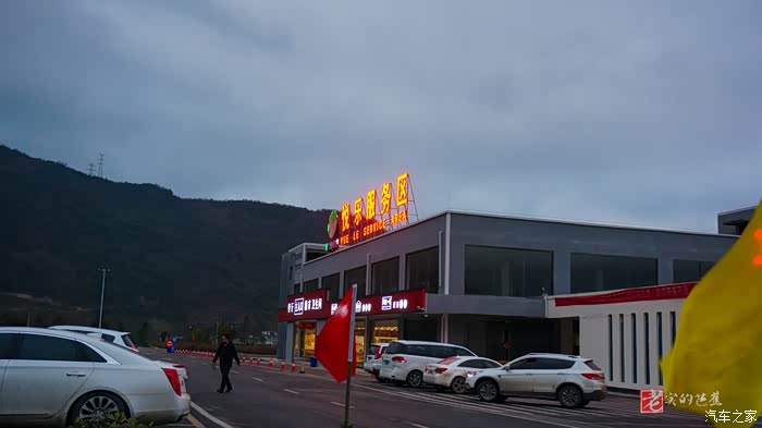 因为是下午出发,走到这个服务区天色已经暗下来,不过到省境内的已经不远了 。
