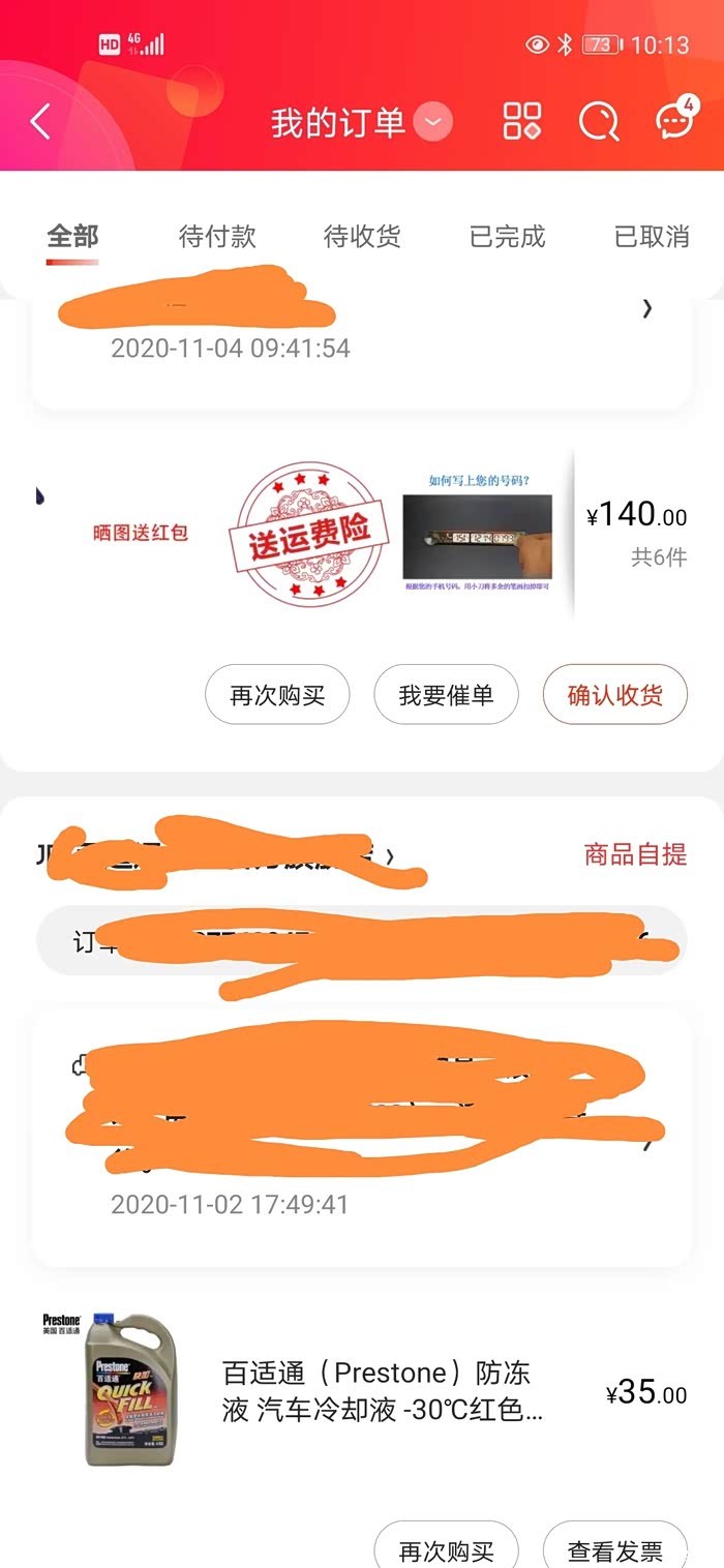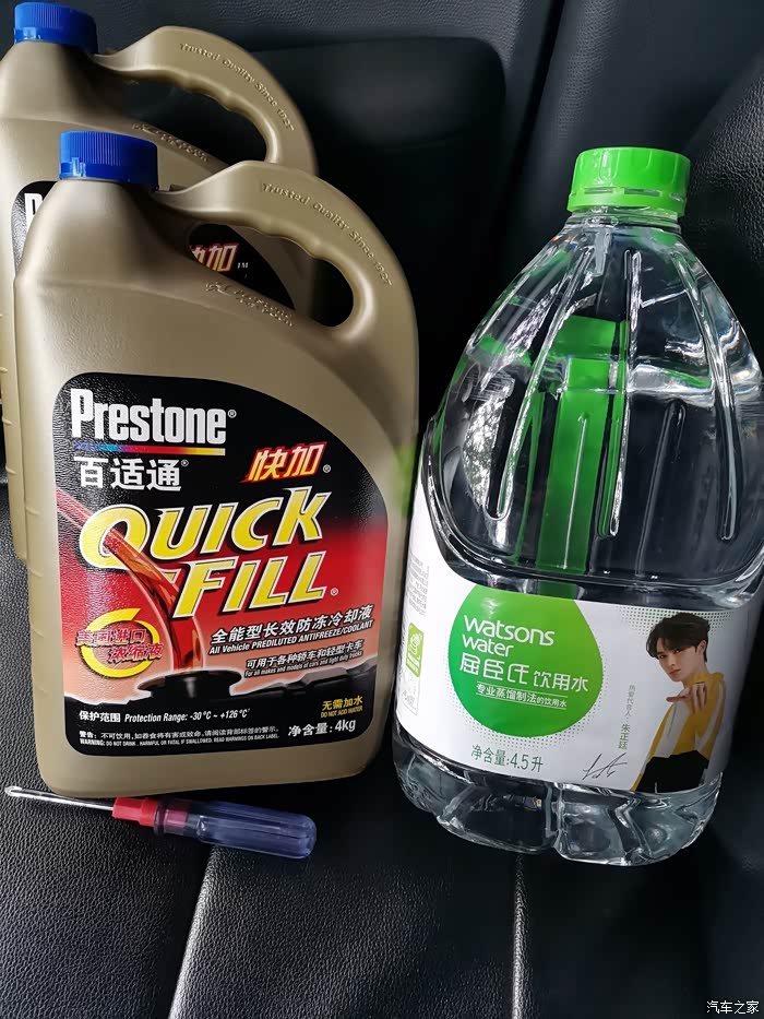14万公里了,除了前年换上水管补加过点,一直都没换过防冻液。最近天凉又赶上双十一,于是某东买了点货自己搞,有兴趣的朋友也可以试一下。