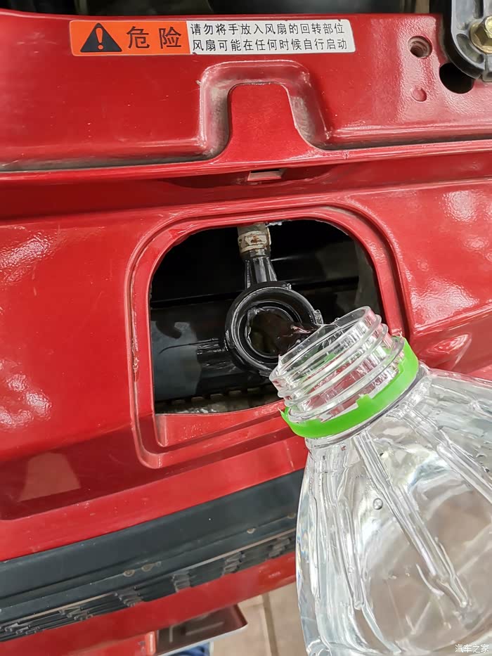 空调要调到暖风,不然上水管热了,风扇也狂转了,下水管还是凉的。怠速十几分钟或者跑十公里后,有暖风,摸上下水管热的,节温器已打开可以放水。重复以上操作直到废水颜色变浅,再加入新防冻液。