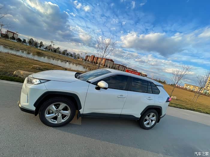 今天是个大晴天??,午后闲着没事打算去湖边公园溜溜,打发下美好时光。最近下载了新的音乐🎵软件,发现了很多很带节奏感的歌。特别适合开车听~都说宁可少吃几顿饭,也要攒钱买台车。当然一台车不是几顿饭就能买下来的,那是很多很多顿饭啊!想必自己奋斗买车的小伙伴们都懂吧。尤其车到手的那种满足感瞬间整个人都不一样啦!在自己所爱的城市,慢悠悠的开着自己喜欢的车奔向喜欢的地方,车里放着自己喜欢的音乐。把天窗轻轻摇开。享受着头顶的风声带来的那种喜悦。幸福感满满。工作日的中午,公园来溜溜的人也比较少,把大白停在了公园的弯路上,下车放松了一会。回头看看大白,就像一个无声的兄弟一样。虽然没有任何言语,但是却无处不在的悉心陪伴。而且大白绝对是个帅气的大兄弟。车长四米八,首先身高这一块就够用了。前脸两个大灯也霸气十足,给人精神的感觉。到了夜晚开灯的时候更是闪耀不可比拟,侧身修长有运动感,线条设计流畅每次总广角拍摄的时候🎬有种豪车既视感。最值得分享的就是我提车的时候特意加了车衣,即使有细微的插碰也不会伤到车的漆面。目前开了将近十个月,一直保养的很好,只有车尾黑色挡版处有三个小刮伤,去问过修车的师傅,说不难处理只要不是漆受损都比较好处理。在这还是建议各位车友平时开车的时候多细心注意一点,防止这种小的刮碰。原本买车的时候,家里人还一直再说买车容易养车难,考虑到加油,维护等后期费用。但实际养了车之后,荣放作为Suv给了我很大的惊喜,省油省油就是省钱,怎么开都不会心疼的那种。更不会对日常开支造成困难。所以只要大家能买到手完全不需要担心后期费用问题。到达湖边公园,空气很好,景色空旷也没几个人,我就和大白静静的停下来欣赏风景,使人有一种内心宁静的感觉。生活中尤其在成年人的世界里很难有这种独处的宁静时刻,真正的去感受一下周围环境带给我们内心的温暖与治愈。总而言之一句话!此刻内心极其舒适。感恩大白的陪伴!