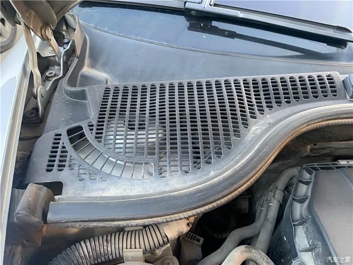 首先打开汽车前盖,接下来就是寻找空调进风口。
