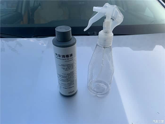 这是购买的汽车消毒液和喷壶。