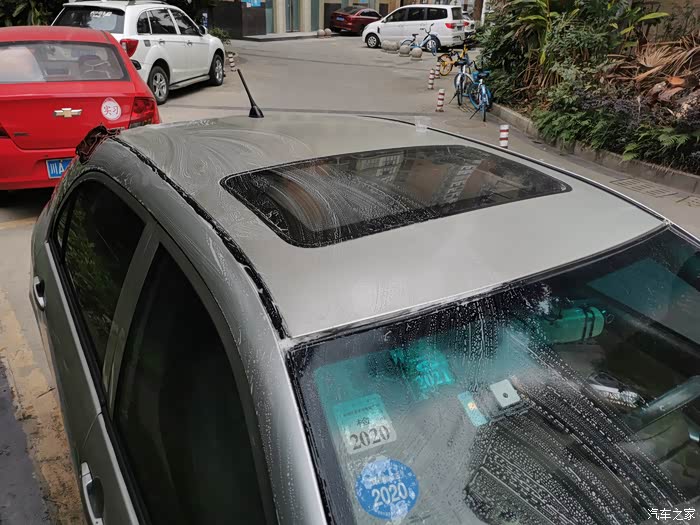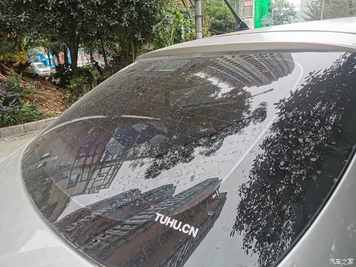 银色的表面不是很明显,后挡风玻璃上看到污渍。