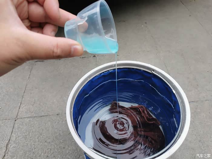 倒入洗车水蜡溶液。
