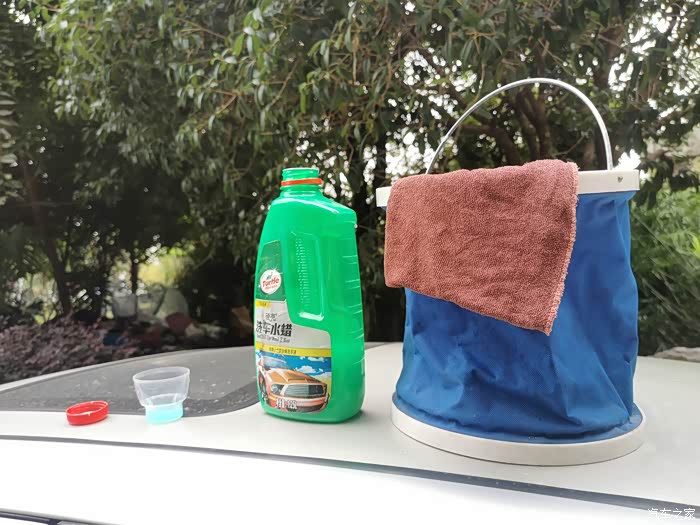做好洗车前的准备,抹布、准备一个水桶容器。