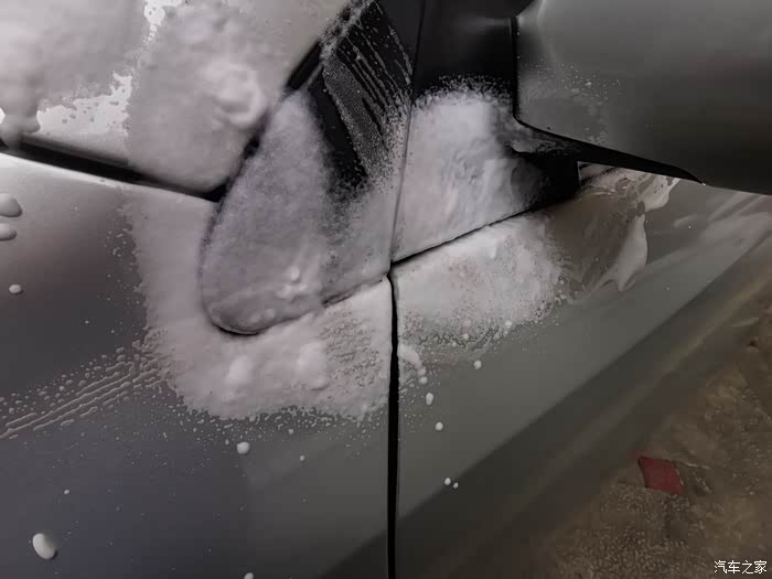 除了车身的平面外观部门,我们平时很容易忽略的就是这些缝隙角落。如果是标准的洗车,这些角落日积月累,尘土增多污渍就比较明显了。