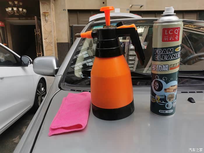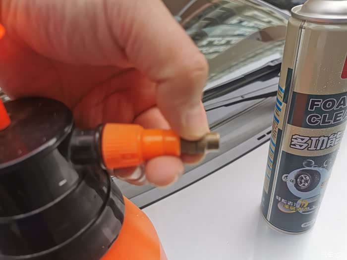 为了更好的分解这些污渍,首先使用了泡沫清洁剂。