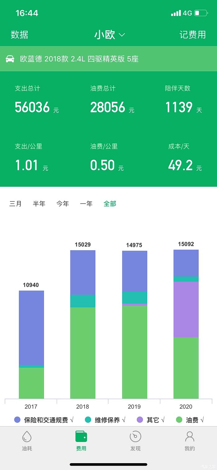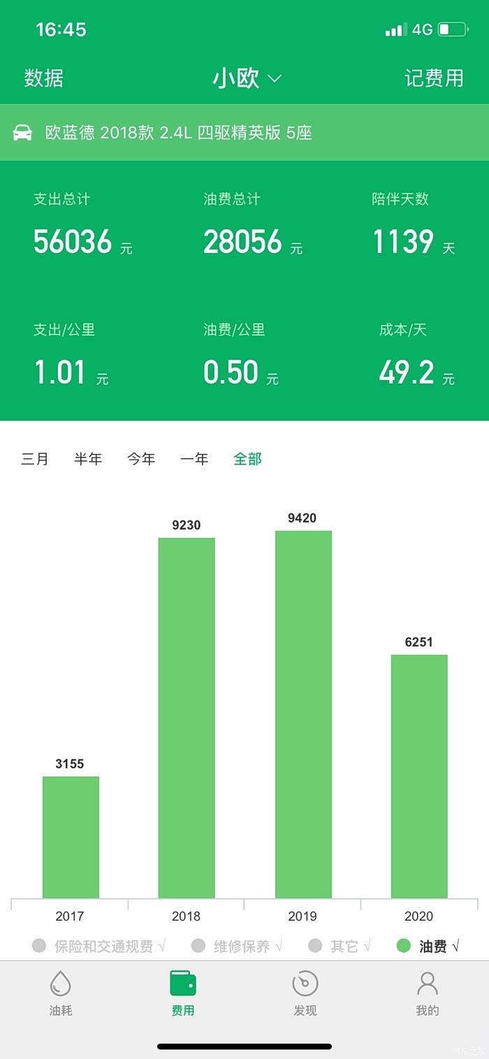 56000km油费支出