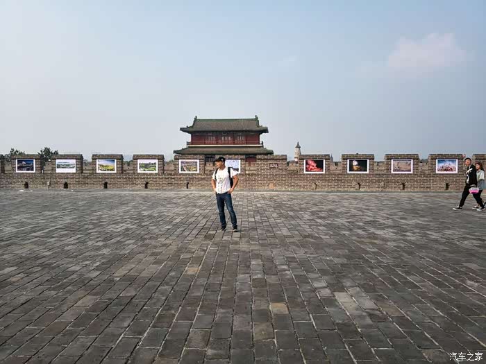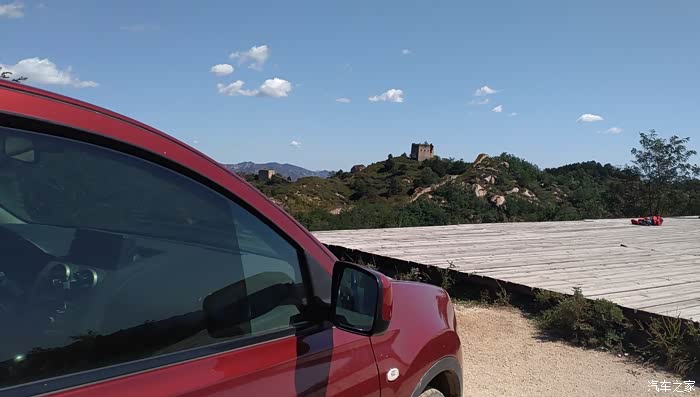 小车爬到长城边。