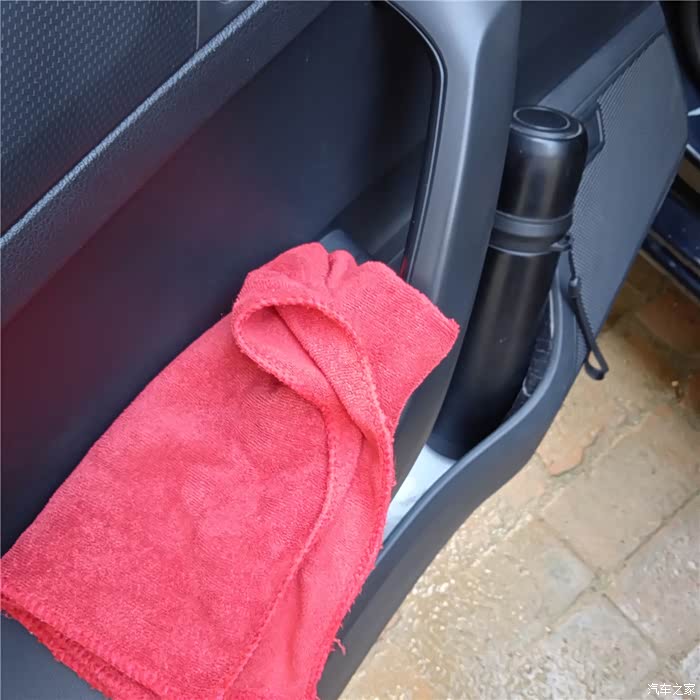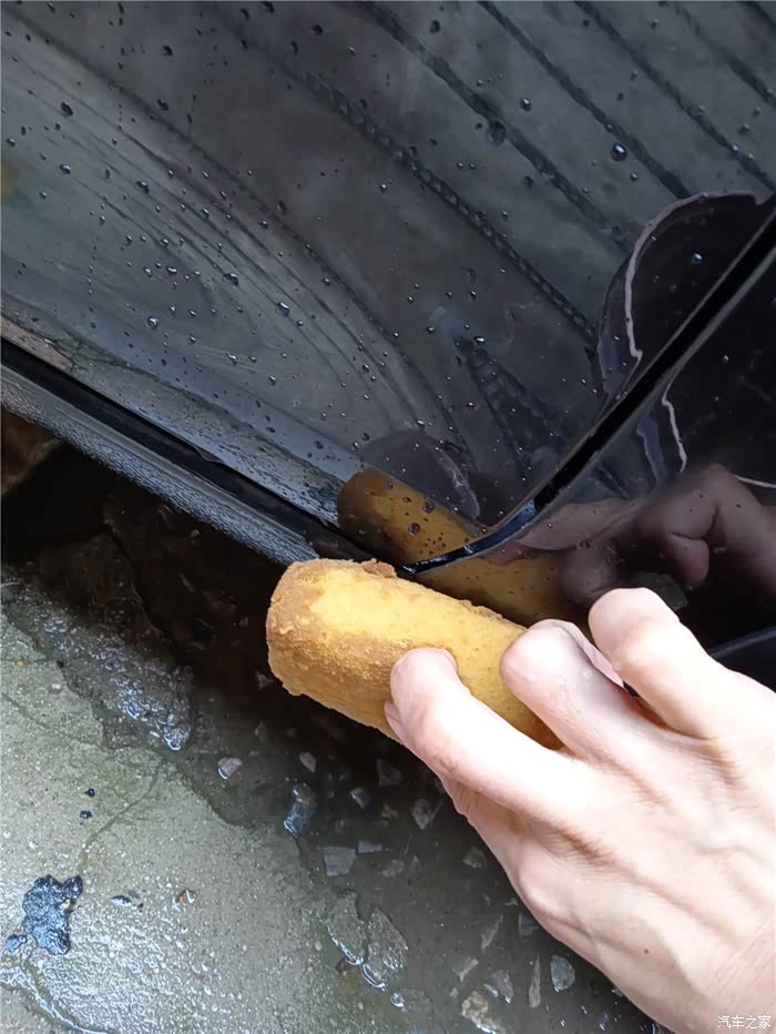 开始打开车门儿,开始擦门边。门边上还都是灰尘。还有车辆后备箱,都用小毛巾一一擦洗干净。