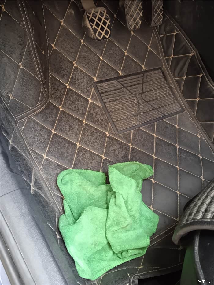 最后再拿一块儿毛巾擦洗脚垫儿,因为脚垫不是特别脏,所以只是用毛巾擦洗一下就好。靠背后面不知道是怎么搞的这么多灰尘。