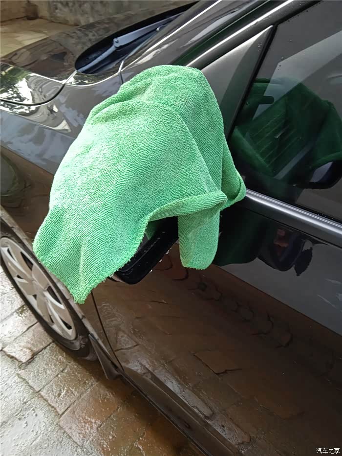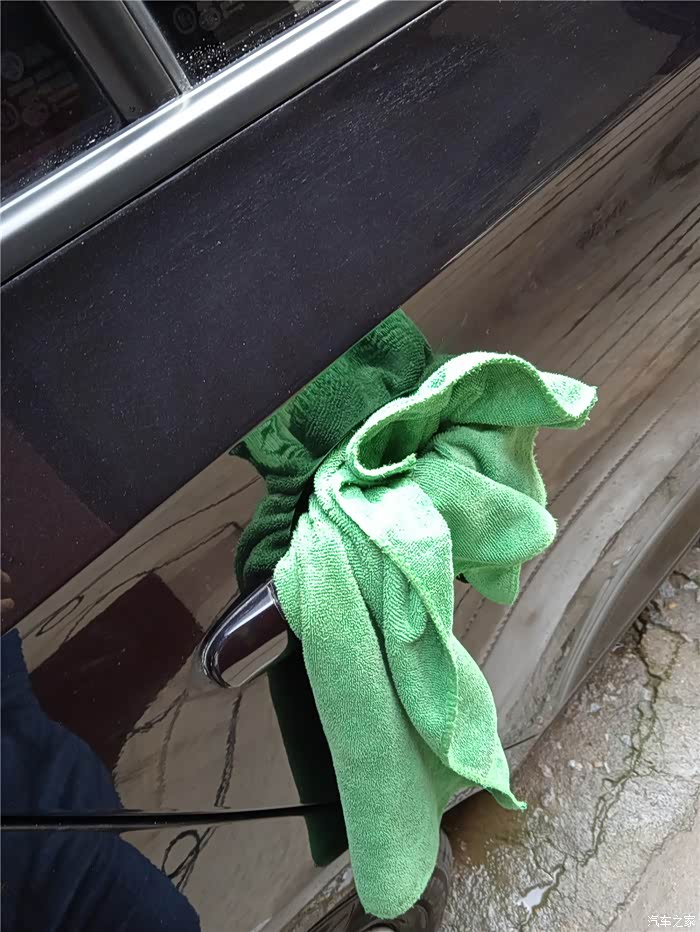 然后再拿出小毛巾开始擦洗车辆的小角落。把大毛巾不好擦的小角落全部擦洗一下,像后视镜还有门把手。小毛巾把小的角落全部擦完。