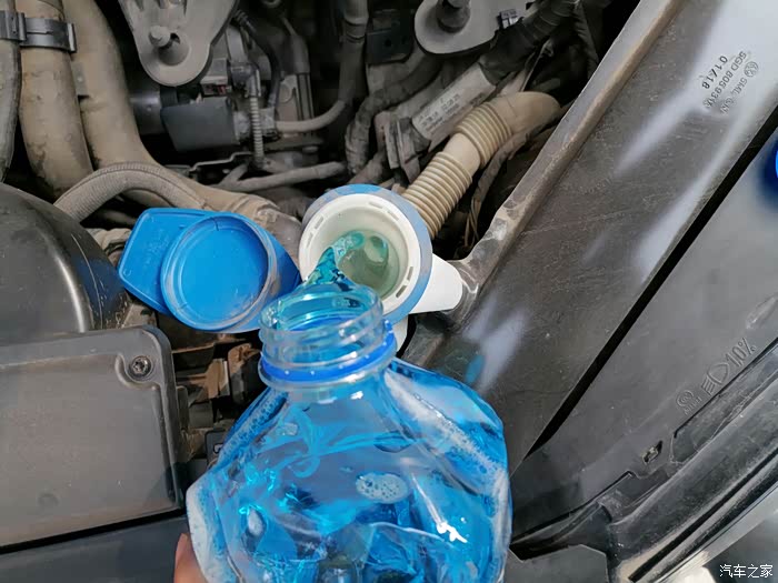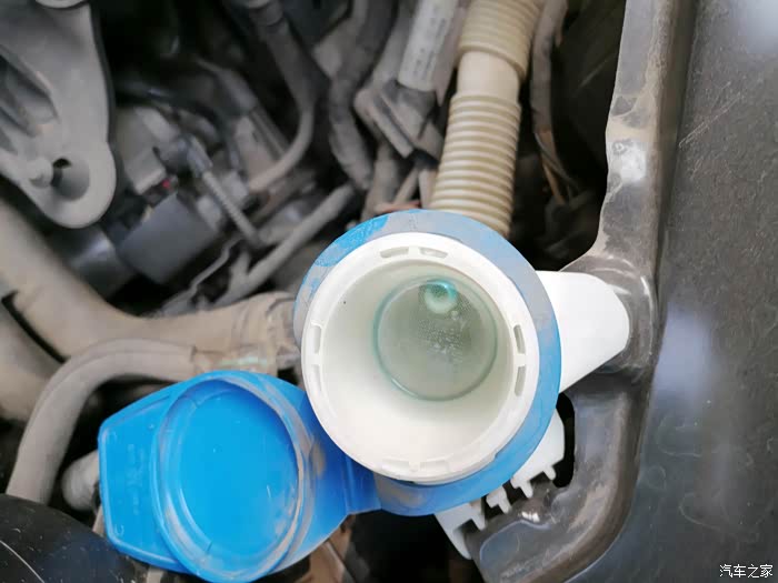 在大众凌渡这款车上蓝色的这个盖子就是添加玻璃水清洗剂的地方,一般的容量就在2L到3L左右,具体使用时间就是看自己的使用情况,尽量去添加玻璃水避免加矿物水,要不时间长了经过高温,水就会出现结构物质堵住喷水口影响使用,玻璃水的添加物就不会出现这种情况防止氧化。
