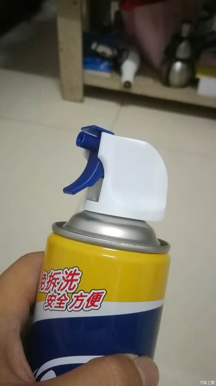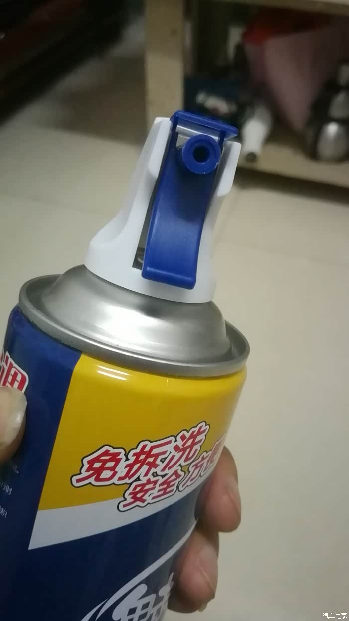 3、将喷头拧到“SPRAY”,对准空调散热片均匀喷射,覆盖整个铝翅片;