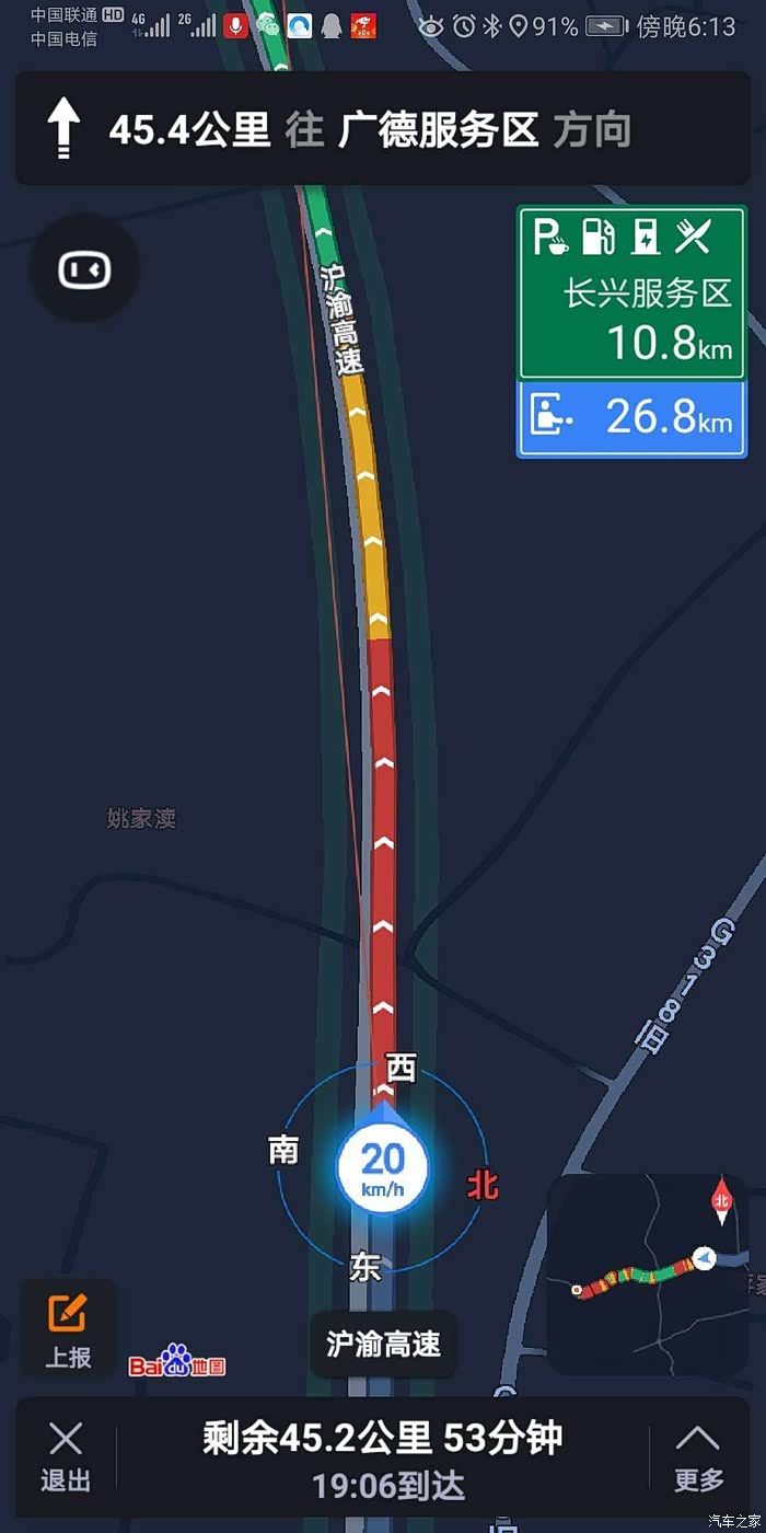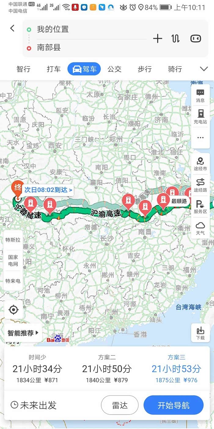 准备出发:出发前采取分段导航,第一个目的地湖洲服务区充电。