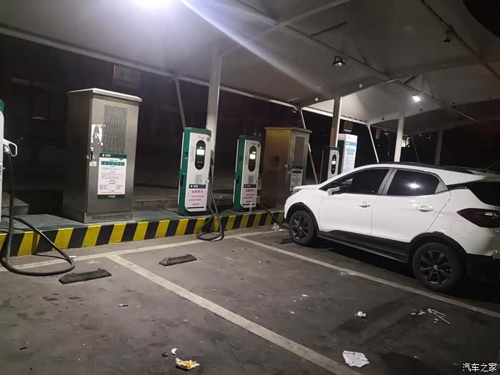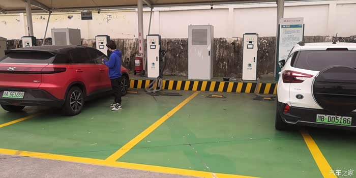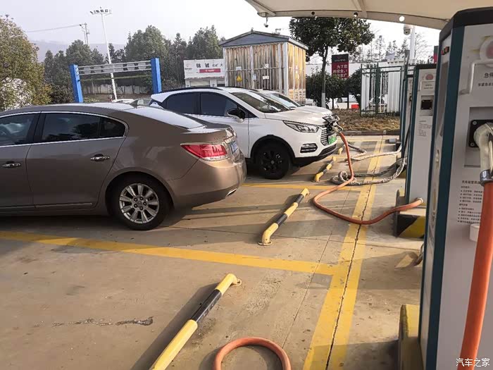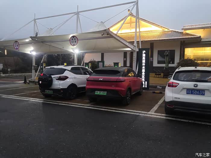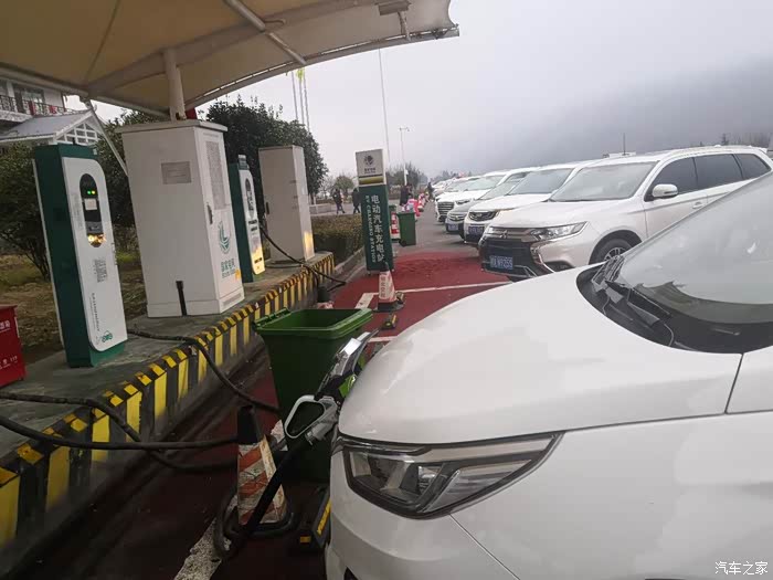 出发之前充电准备,跑长途的其实还挺多,充电区看其他车的车牌就知道。