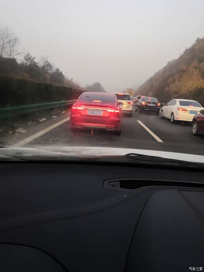 堵车严重,看看我做了防雾处理的效果(未开空调哦)堵车是一点也不浪费,就是堵的心烦,堵了10多公里,后面还有堵20公里上的,我就不在多发堵车的图片了,只要不开空调,随便堵。