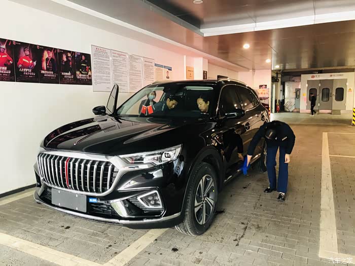 车辆交给我们小哥开进售后去了,正好发现一位HS5新车主,这是售后人员在进行新车检测吗!