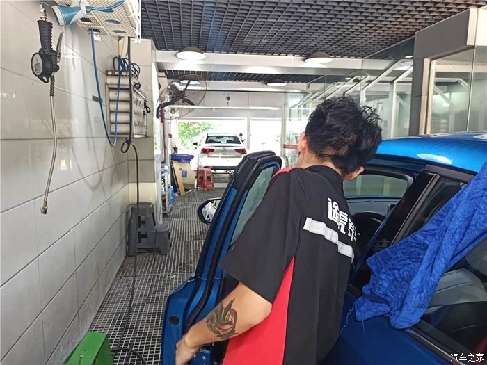 到达某虎养车店面后,还小小的排了下队,来做美容和养护的人还挺多的。