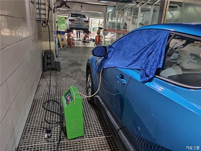 由于臭氧管路需要从车窗伸进车内,车窗会留下一道缝,师傅会拿一块含水的大毛巾,将缝隙的地方挡住,尽可能不要漏气。