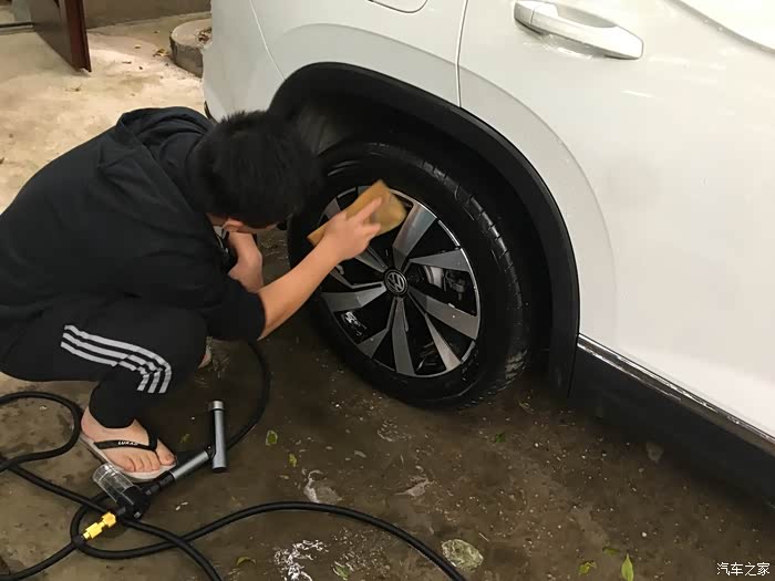 下面就是洗轮胎+轮毂啦,小朋友今天真的很卖车,晚上必须加鸡腿,哈哈哈