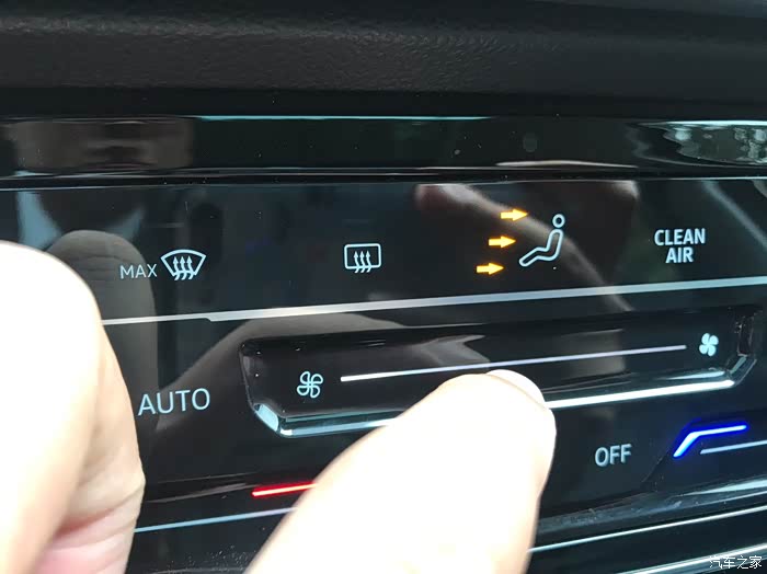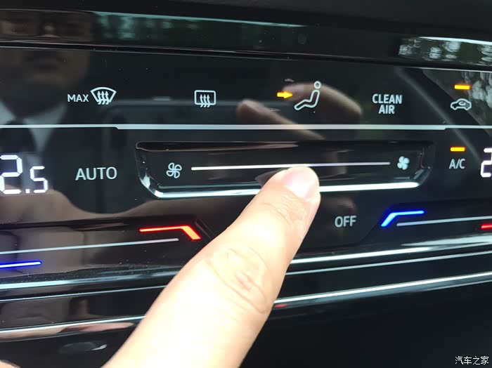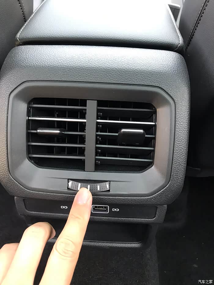 后排出风口风量大小调节旋钮,这个位置代表风量全部打开!