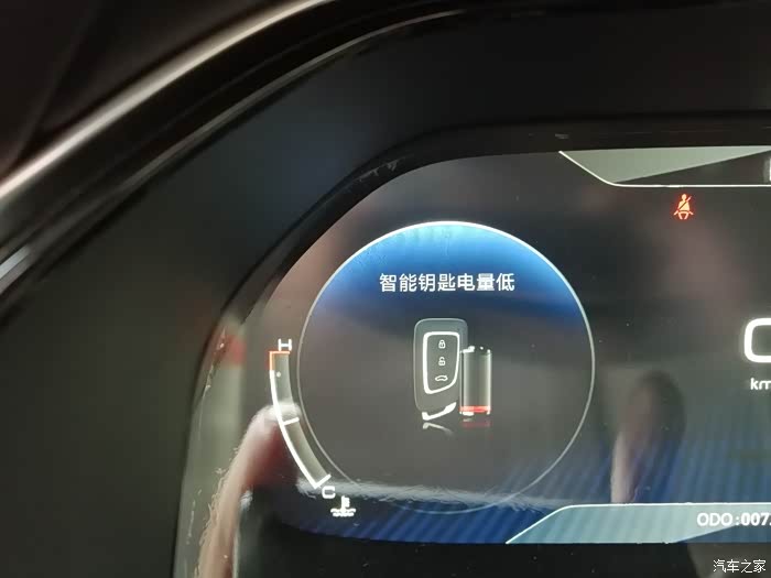 爱车买回来至今已经有一年多了,本人平时开车比较少,由于工作地方与住处较近,平时上下班骑电动车时比较多,也很少关注爱车情况,前几天朋友约我一起出去玩,在返程时候,车机显示屏提示,遥控钥匙电量过低。