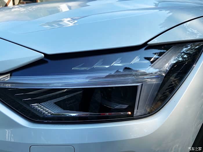 极星2细节比较讲究,LED大灯里面还有极星的品牌文字。大灯造型感觉很熟悉,沃尔沃的雷神之锤。