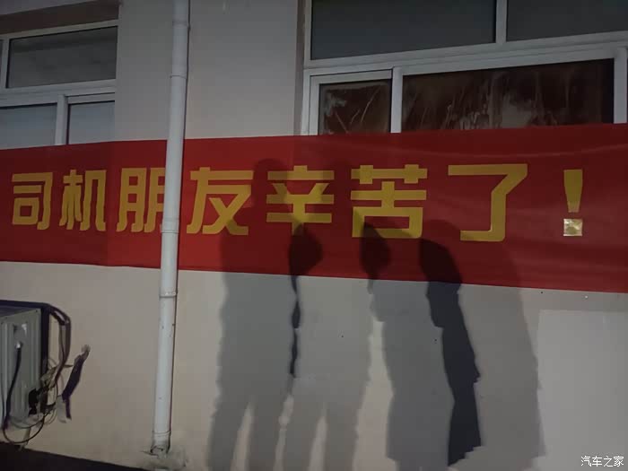 服务区的条幅还挺符合的,早上真的超级冷啊!冻的人都不行了!!