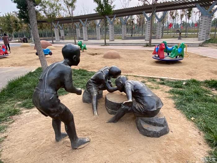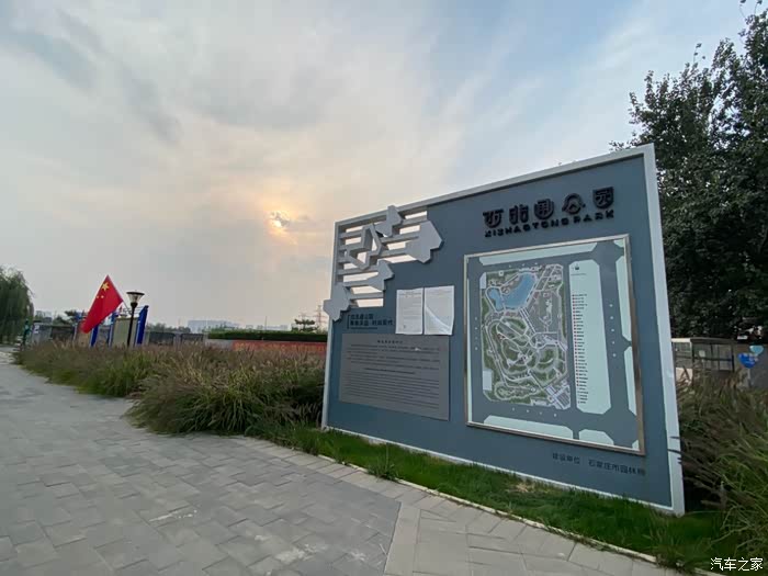 这个公园是近期刚刚建好的,位于长安区石丰路,上次路过这里,因为有事比较着急,所以没有进去逛逛,一直惦记着来这里看看,今天下午开小七给大姐送完东西,放下就开车过来了,虽然公园门口不大,但是里边确实豁然开朗,赏、游、玩、健身、一应俱全,真的很不错👍