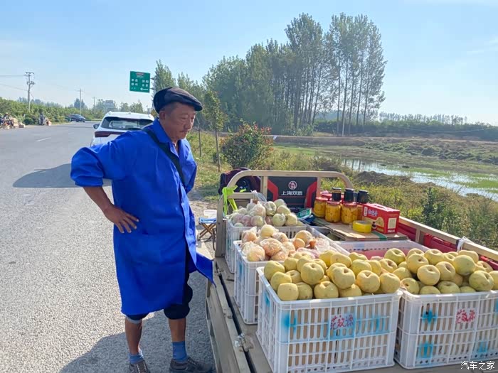 上高速前,这位大爷的酥梨不错,买了一点,块吧钱斤,便宜实惠!