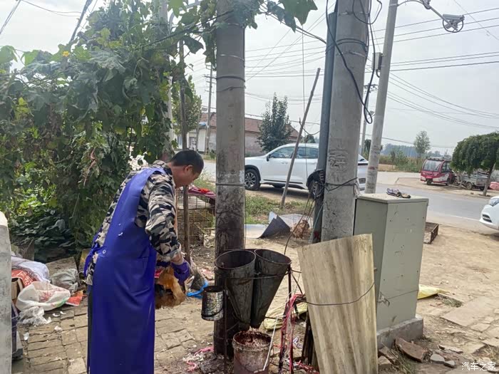 赶了近六百公里后,下高速,到亲人家了,带了点东西,把东西送过去,顺便吃个饭再走!