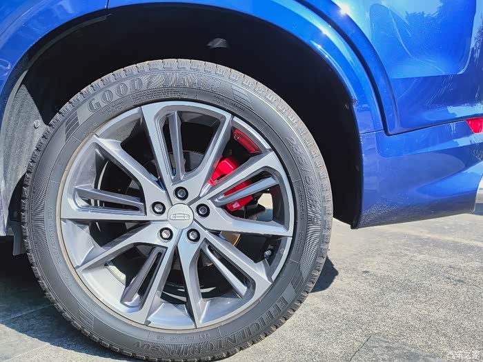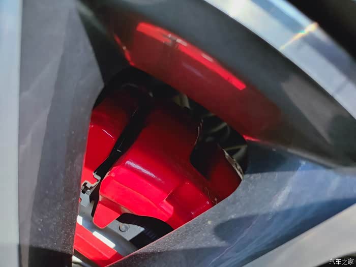 19寸的轮毂配备红色的刹车卡钳,非常的有运动感。