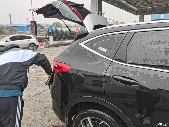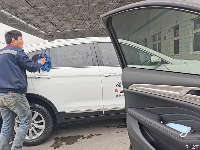 带着媳妇出门驱车前往加油站,今天来的早我前面只有一辆车在洗,等了几分钟把车开进去,收起后视镜,自动洗车机开始喷水工作,洗车机从车前车顶车身和车尾全方位的进行了冲刷和擦拭,整个过程不到三分钟,然后把车开出来停在空旷的地方。从后备箱拿出我平时洗车用的擦车布准备把车擦干净。