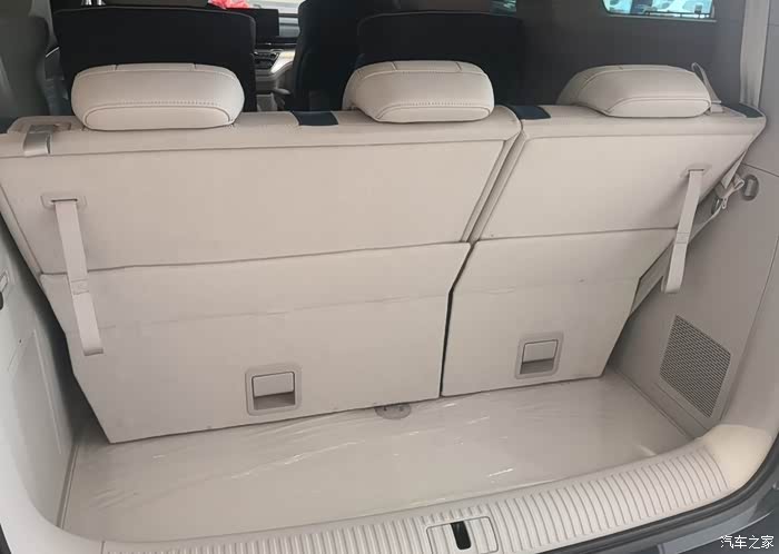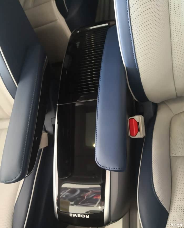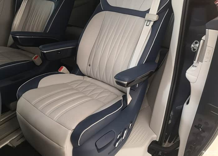 实拍的荣威imaxi8采用2+2+3的7座布局,座椅采用蓝白拼接配色,质感上乘,第二排两个独立座椅均设有扶手、舒适型头枕、电动腿托还具备座椅按摩,腰部支撑调节、靠背角度调节、加热通风的功能。