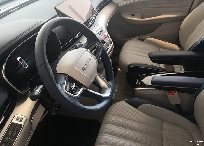 荣威imax8内饰造型简洁,内饰主体采用风格时尚的蓝白配色,中控台采用环抱式设计,不同的颜色搭配提升了层次感,空调出风口采用左右贯穿式设计,特点鲜明,新车采用电子换挡机构,档杆位于中控大屏下方,这种档杆布局形式在mpv车型中常见