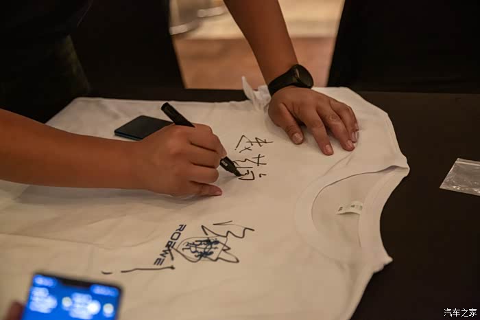 不知在谁的提议下,大家亲笔签名做了一件联名T恤准备发布会送给荣威的大家长们。
