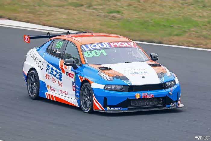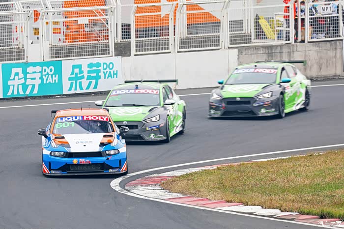 最终张臻东超越了队友何晓乐,并超过601号车,获得这个回合的冠军。BTW:图中艾明达的20号车上的碰撞痕迹,是发车进入1号弯时和捷凯领克车队的马青骅碰撞造成的,结果艾明达车损不大,继续比赛,最终获得这个回合季军,而马青骅的车退出了这回合比赛。当时只顾着拍领头的601号车和22号车抢第一位置,没看到这个碰撞,放下相机才看到