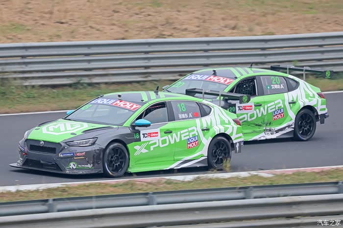 MG XPOWER车队22号车何晓乐和18号车车手张臻东紧紧咬住601号车
