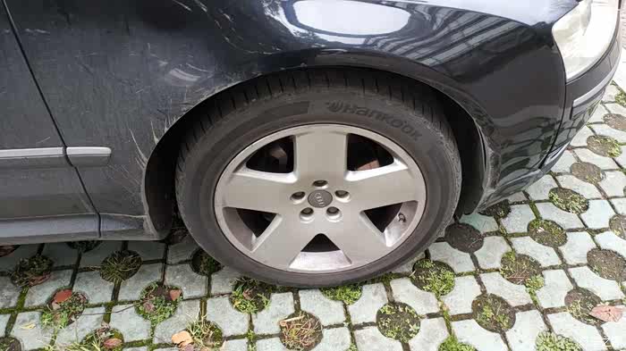 侧面,5幅大轮毂,样式实在一般,买完车整备完,存款将尽,没钱换了.....