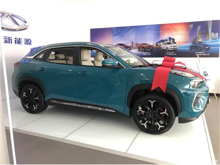 我在店里看的是蓝色的这款,颜值真的是相当高的,特别是蓝色这个颜色非常的吸引人,前脸的设计很霸气,格栅为纯电动车型惯用的封闭式设计。