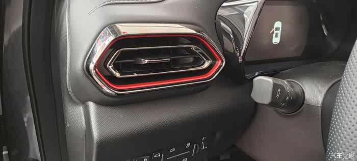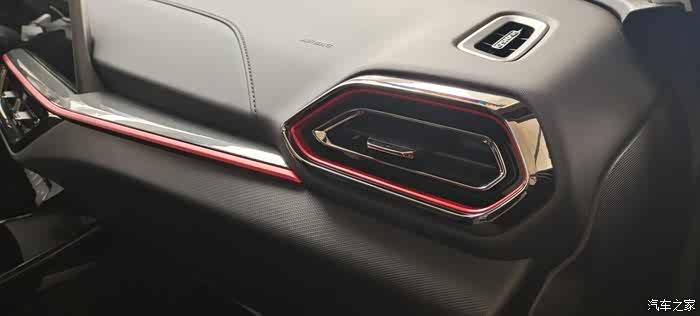 多层次造型空调出风口 ,三层设计,据介绍可承受100度高温不变形掉漆,不过镀铬和红色装饰看上去很漂亮!