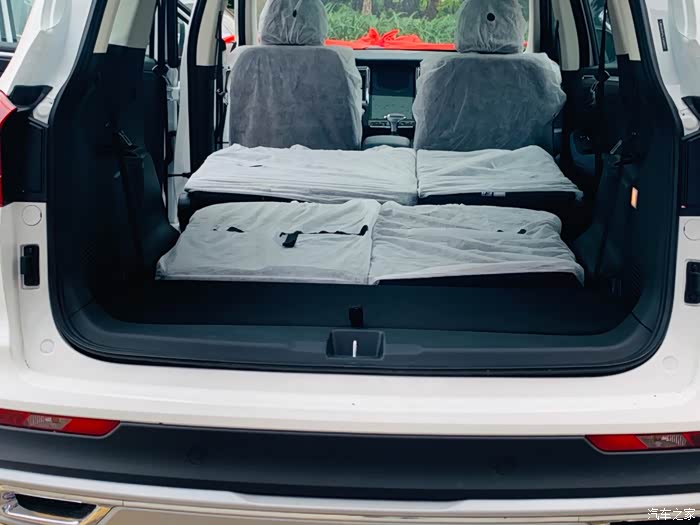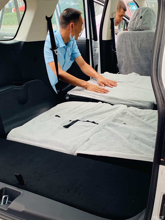 是七座的车子,座椅全部放下去空间还蛮大的,新车连座椅保护套都还没有拿开.