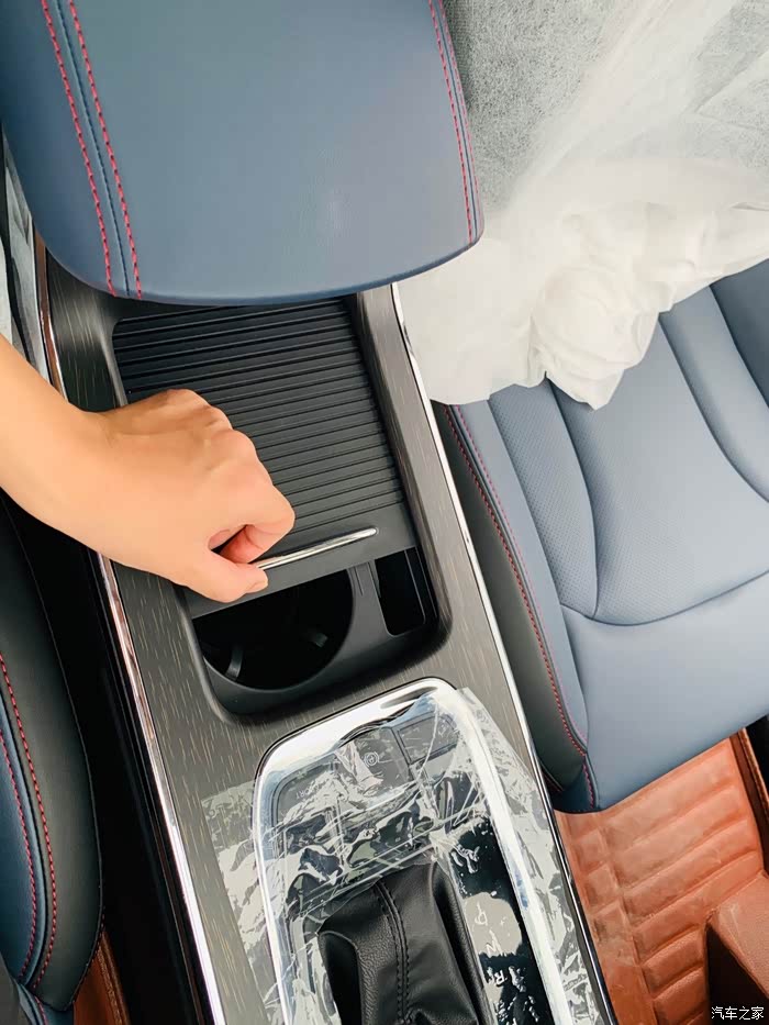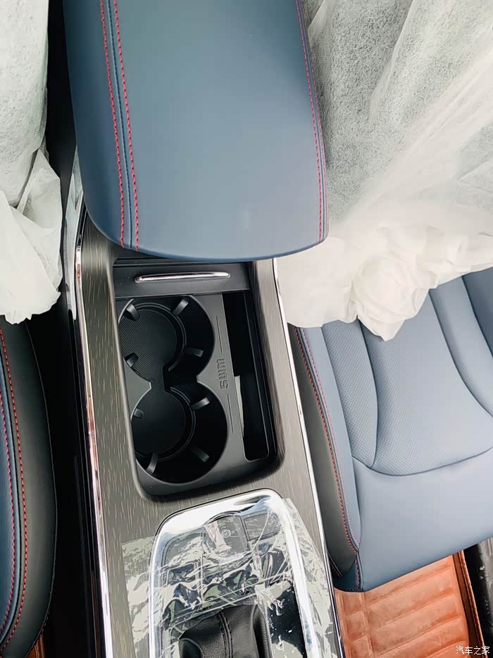 中央扶手的设计很人性化,两个杯槽,旁边还留出个地放手机。