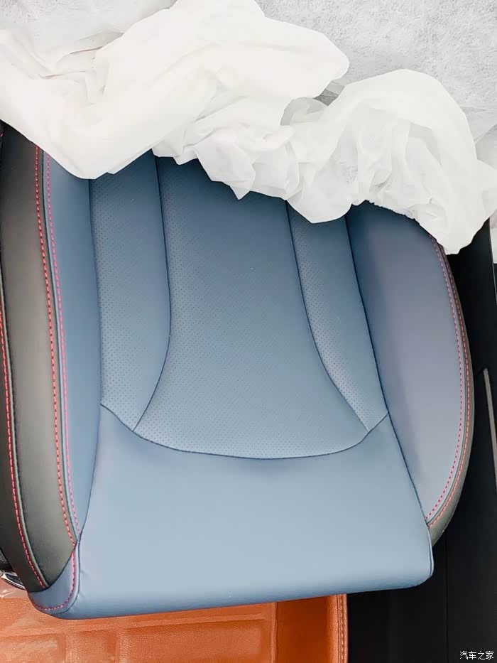 座椅和车门都是用了蓝色的软皮包裹,不但手感好,内饰看起来也不会那么沉闷。