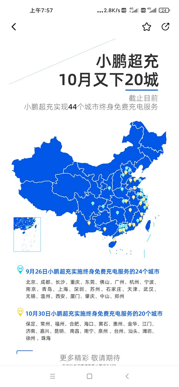很多鹏友在买电车之前,都会有里程焦虑症,最近小鹏推出的终身免费充电服务,覆盖范围越来越广,还不能打消你的疑虑吗?